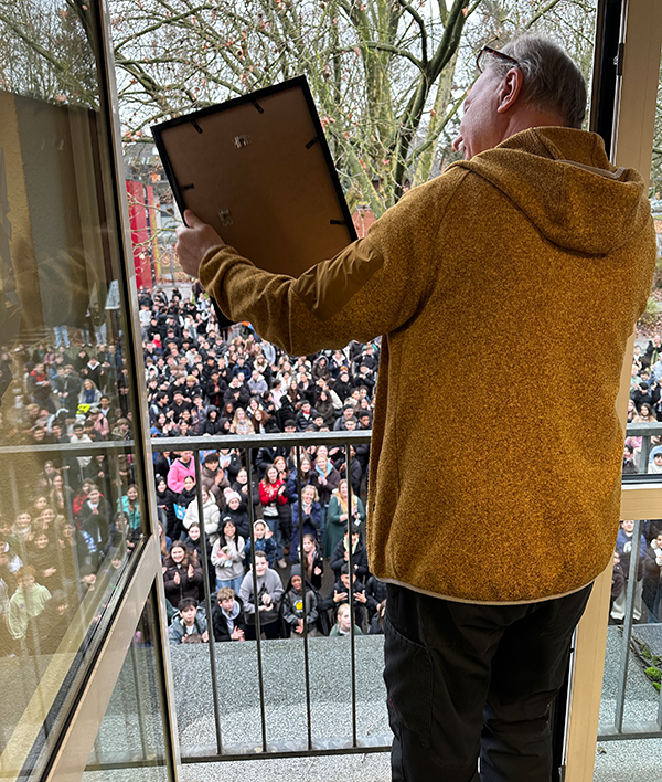 Nach 15 Jahren verabschiedet sich Herr Michael Bonny als Hausmeister von der Realschule Frechen. Die gesamte Schulgemeinde dankt Herrn Bonny für die geleisteten Dienste. Zum Abschied kamen alle Schülerinnen und Schüler zusammen und es gab zum Schluss einen donnernden Applaus. Schulleiter Daniel Wuttke bedankte sich ebenfalls herzlich im Namen des Kollegiums. Wir alle wünschen Herrn Bonny alles Gute für den wohlverdienten Ruhestand.