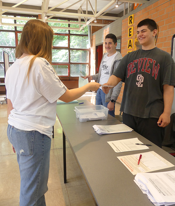 „Ich habe mich gemeldet, weil ich wissen möchte, wie eine Wahl abläuft und organisiert wird“, erzählte Wahlhelferin Nicole Tokarczyk. Die 11 Wahlheferinnen und Wahlhelfer sorgen für den reibungslosen Ablauf der Wahl und zählten hinterher unter Aufsicht die Stimmen aus. Insgesamt 13 Klassen der Frechener Realschule nahmen an der Wahl teil. Schüler Fynn Siem zeigte sich begeistert: „Ich finde es super, dass wir eine Wahl durchführen. In einigen Jahren nehmen wir an den richtigen Wahlen teil und bekommen schon jetzt wichtige Einblicke.