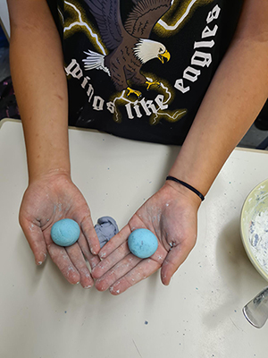 Hier werden bunte Duschkugeln komponiert.