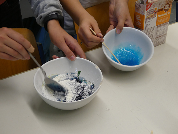 Wie macht man Dusch-Kugeln? Was sieht man unter einem Mikroskop? Warum geht mit einem Schalter Licht an? Hinter den Alltagsdingen steckt viel naturwissenschaftliches Know-How. Die Realschule Frechen bietet für daran interessierte Schülerinnen und Schüler der 5. und 6. Klassen eine ganz besondere AG an. In der Forscher-AG unter der Leitung von Nina Schreitmüller und Sabrina Trömel werden die Teilnehmerinnen und Teilnehmer zu Forschern und entdecken auf spielerische Weise naturwissenschaftliche Phänomene. Stift und Papier braucht man hier weniger, die praktische Arbeit steht im Vordergrund, was den Teilnehmerinnen und Teilnehmer viel Spaß macht.
